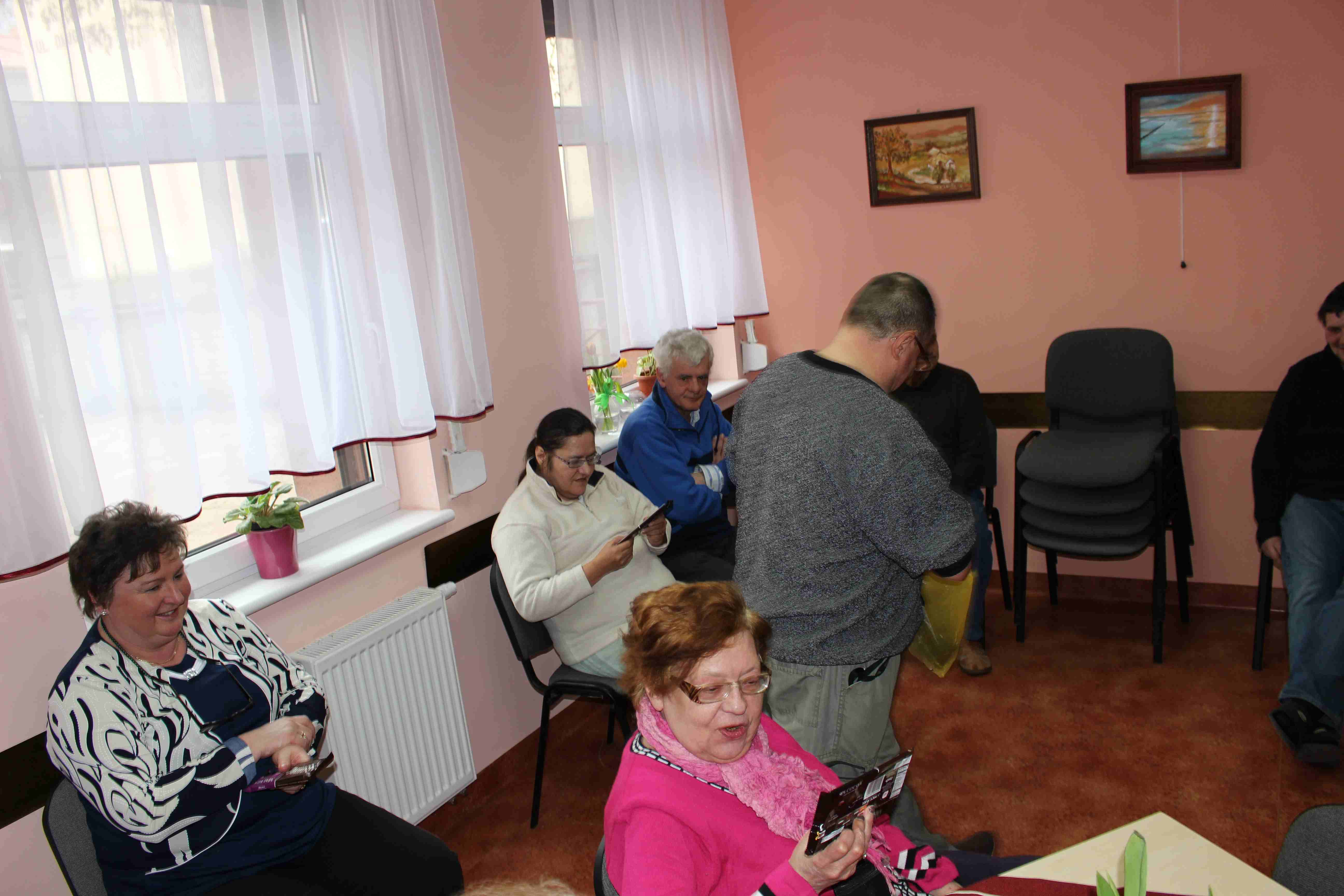 otrzymały kwiatki i tabliczkę czekolady.Panowie z ZWŚ 2 odśpiewali im gromkie 100 lat.