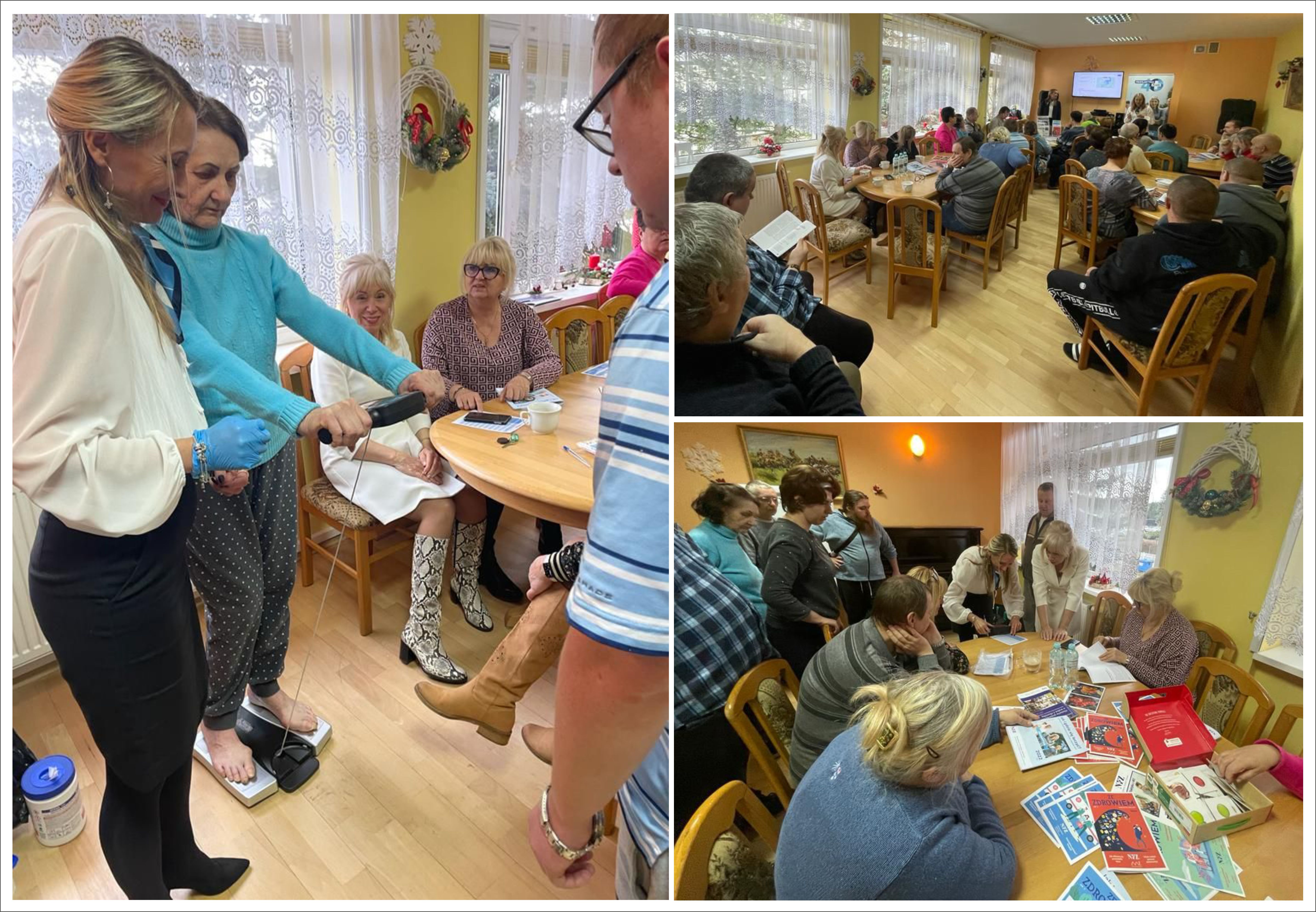 W dniu 17. 01.2023 r. mieliśmy okazję gościć dwie Panie z Zachodniopomorskiego Oddziału Wojewódzkiego NFZ, które przybyły do nas ze swoim stanowiskiem informacyjno-edukacyjnym. Głównym celem spotkania było zwrócenie uwagi na szczególne potrzeby osób po kryzysach psychicznych. Uczestnicy ZWŚ 1 usłyszeli jak duży wpływ na codzienne funkcjonowanie mają: odpowiednie nawyki żywieniowe oraz wyciszanie stresu i negatywnych emocji, poprzez aktywność fizyczną i samorealizację. Motto jakie zostało nam przedstawione to wyzwanie roku 2023: „Zdrowie- mój najlepszy przyjaciel! Dlatego badam się i żyję zdrowo.” Uczestnicy mogli poddać się różnym badaniom między innymi dużo było chętnych na badanie analizatorem składu ciała, jak również zadawano mnóstwo pytań dotyczących diety, badań profilaktycznych, programów zdrowotnych. To było bardzo ciekawe i edukacyjne spotkanie za co serdecznie dziękujemy i mamy nadzieję na kolejną wizytę w naszym ośrodku.